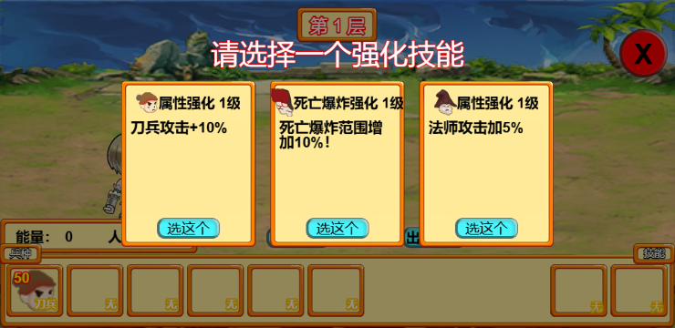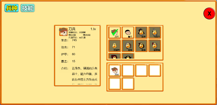 此游戏为休闲战斗类游戏,游戏开始之后,我们可以通过生成不同的兵种来应对敌人的进攻,每关还有特殊技能可以使用,能够更快的消灭敌人,还可以通过升级庄园和兵营来解锁更多的兵种,以便轻松应对后面的关卡。