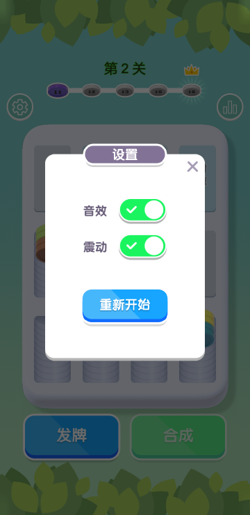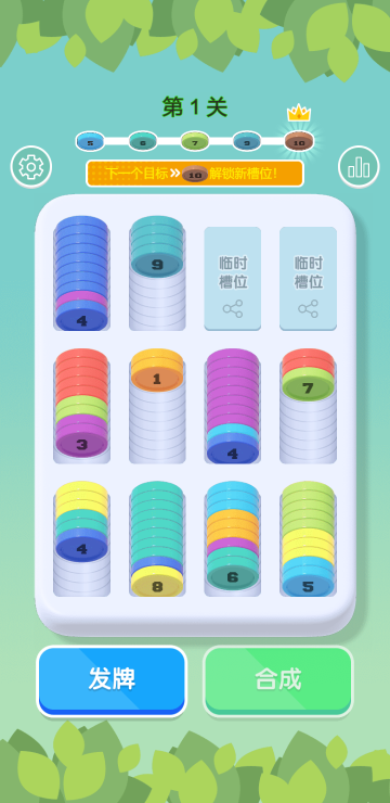 此游戏为休闲类游戏,游戏内容很简单。每一关只需要达成特定目标即可进行下一关,比如第一关的目前是解锁数字10,通过发牌和合成功能,只要合成到10即为过关,以此类推,非常好玩的解压游戏。