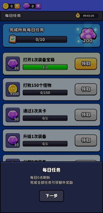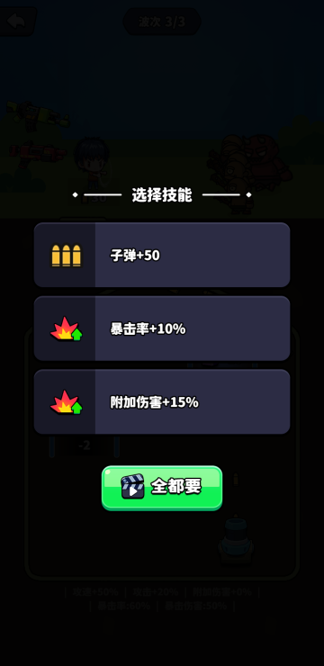 此游戏为休闲战斗类游戏,游戏中你需要防守我方阵地,可以通过移动下方炮台来改变子弹方向,以便更好的获取奖励,当击破宝箱则会出现各种奖励供你选择,可以让你更加轻松的击杀敌人,还有商店和任务系统,各种道具等你来拿。
