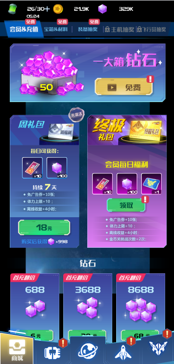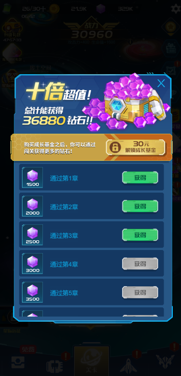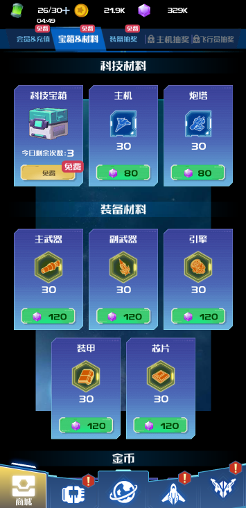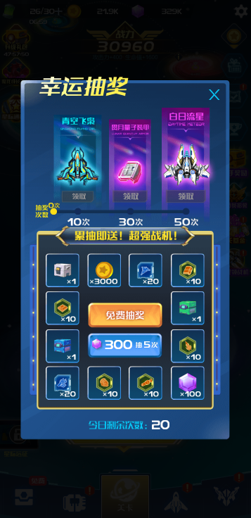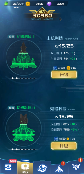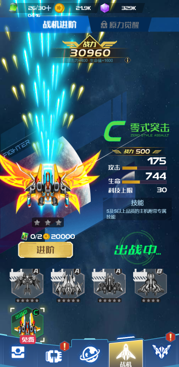 此游戏为休闲战斗类游戏,游戏中你需要操作战机来闯关,每一关分为不同的小关卡,全部通过才能进入下一关,提升战机的实力有很多种方式:通过抽卡获取顶级装备、升级科技力量、购买道具来战机进阶等,并且战斗中还可以通过开箱子来获取属性加成和辅助战机等,游戏为充值方式的获取道具,可以根据自己需要修改。