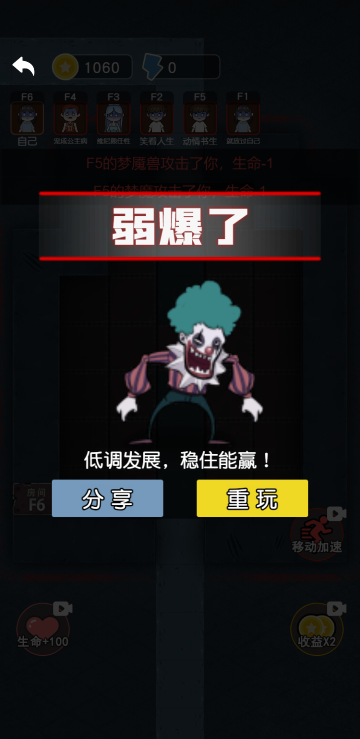 此游戏为休闲塔防类游戏,你需要不断的放置升级防守道具,阻止怪物的攻占,并放置进攻类道具进攻其他玩家,游戏有惊悚的背景音乐和阴暗的游戏画面,还有多种游戏模式,快快来体验吧。