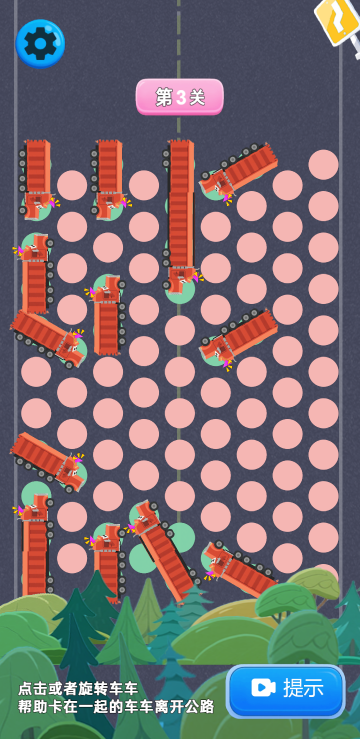 此游戏为休闲益智类游戏,主要考验玩家的空间规划与策略能力。通过拖拽车辆移动清理道路,需合理规划车辆进出顺序,随着关卡升级挑战难度逐渐增大,操作简单但需策略调度。