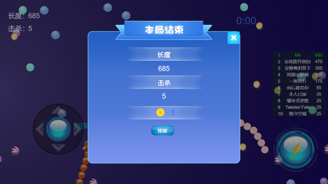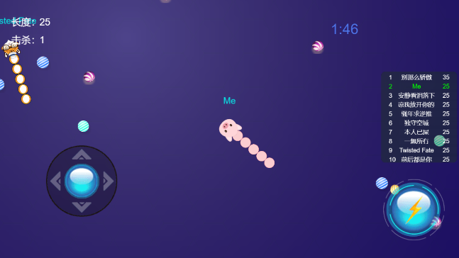 此游戏为休闲类游戏,通过移动方向来改变蛇的方向,并尽可能多的吃到食物才增加长度,千万不能用蛇头碰到别人的身体,也不能出边界哦。