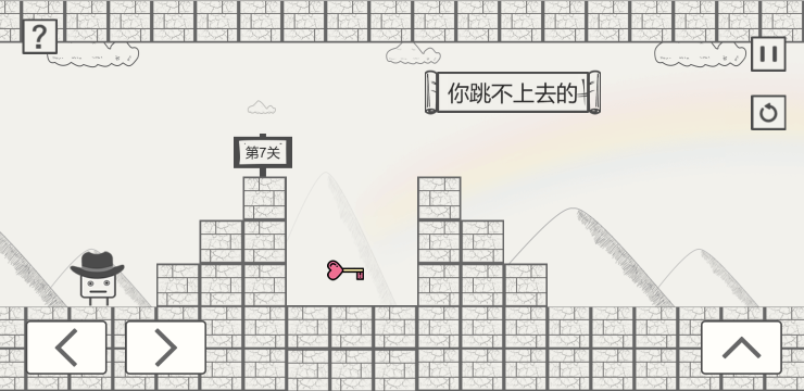 此游戏为闯关益智类游戏,游戏以极简画风和创意解谜为核心,玩家通过操控戴帽子的方块角色跳跃、收集钥匙等操作推进关卡,结合数学逻辑、路径选择和场景互动解谜。破解机关陷阱通过关卡,快来挑战一下吧。