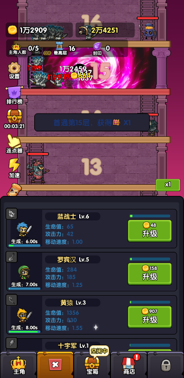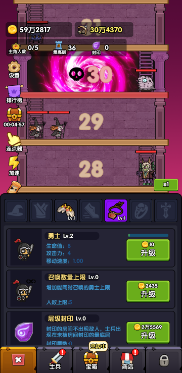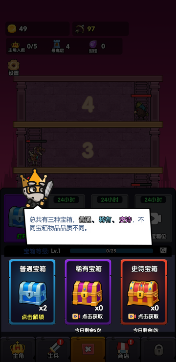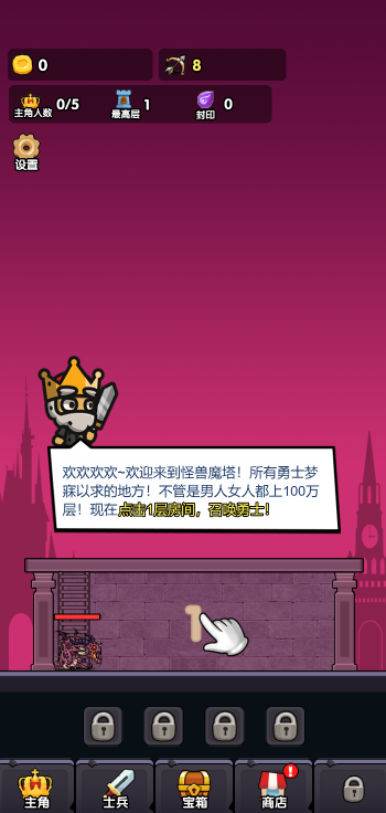 此游戏为休闲闯关类游戏,以文字叙事为主,通过全自动战斗、策略天赋加点和装备强化进行塔层挑战。击败不同层数的敌人逐步解锁更高难度,每层包含独特BOSS战。你可分配成长点提升属性,并收集装备强化角色能力。
