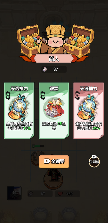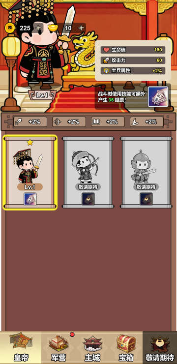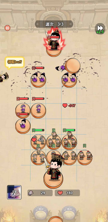 这是一个策略塔防游戏,你会拥有很多的战士,每个战士功能是不一样的,你需要合理搭配并升级他们,让他们能在战斗中发挥巨大作用。你还可以通过战斗外的各项任务和玩法来获取更多货币,用于开箱子升级你的战士,快来体验吧!