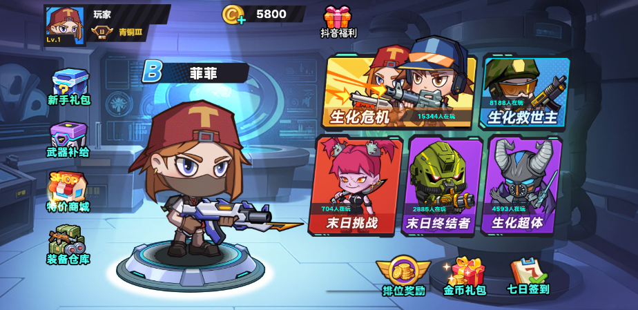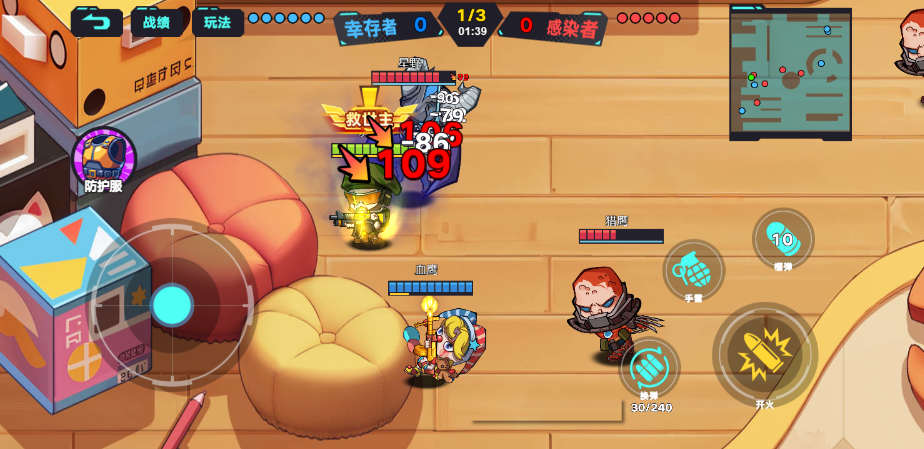 此游戏为动作射击类游戏,玩家可自由切换人类战士或丧尸战士,在卡通化末日地图展开欢乐攻防;也能变身为造型搞怪的生化角色,释放独特技能突破防线。有多种玩法选择:生化危机、生化救世主、末日挑战、末日终结者、生化超体。紧张刺激的攻防对决,搭配可爱画风,带来轻松又爽快的对战体验。