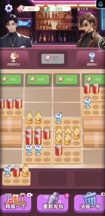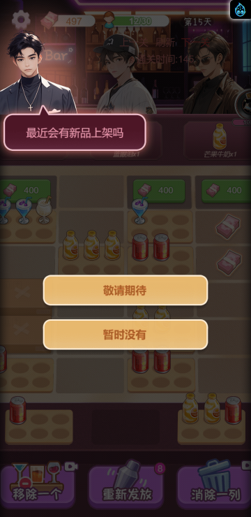 此游戏为剧情消除类游戏,游戏中你是一个经营商,可以通过消除游戏完成任务或获取金币,用于购买酒馆的设施和人员,可以同时拥有多家酒馆哦 ,努力通过消除游戏来赚钱吧,打造属于你的专属酒馆,还可以邂逅不同的人!