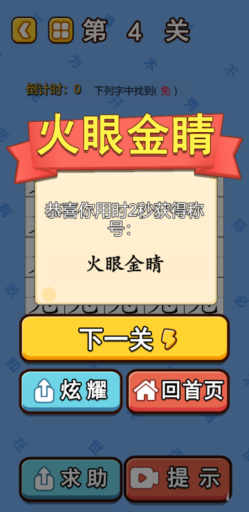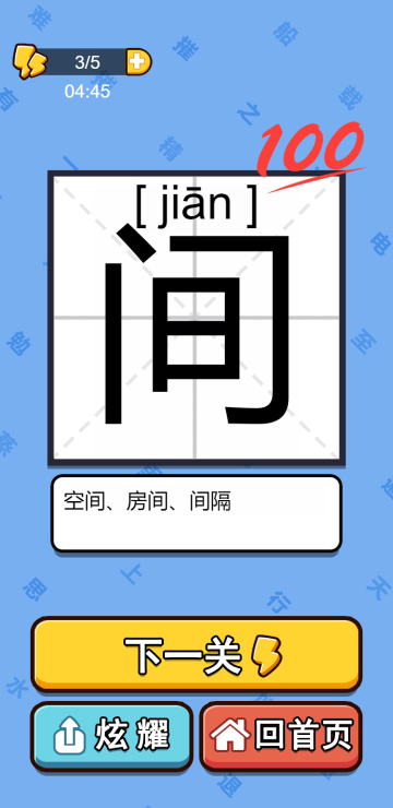此游戏为休闲益智类游戏,游戏有许多模式,比如闯关模式、铁索连环、悠悠众口、移笔换字、奇妙汉字、一笔多字等等,在不同的游戏模式中,你能体会到中国汉字的强大魅力,甚至会发现用了这么多年汉字还有许多没有发现的秘密,快来探究一下吧!