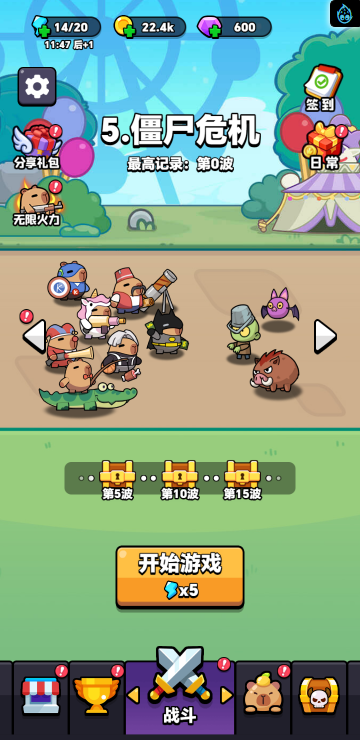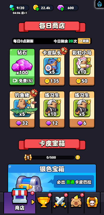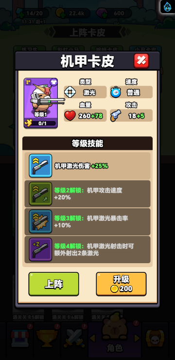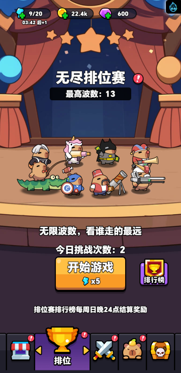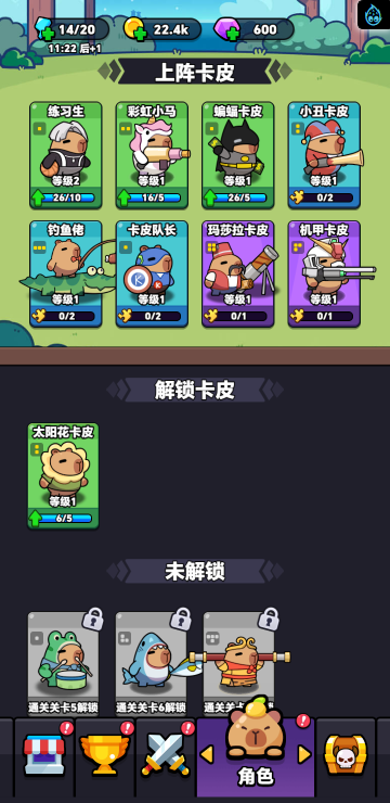这是一款背包塔防游戏,游戏中你会拥有不同类型的卡皮巴拉,可以通过提升等级来增强实力,每一波战斗之前也可以通过合成更高等级来增强战斗力,还可以通过等级的提升选择合适的词条来增强攻击力,是个很有意思的塔防游戏,快来试试吧!