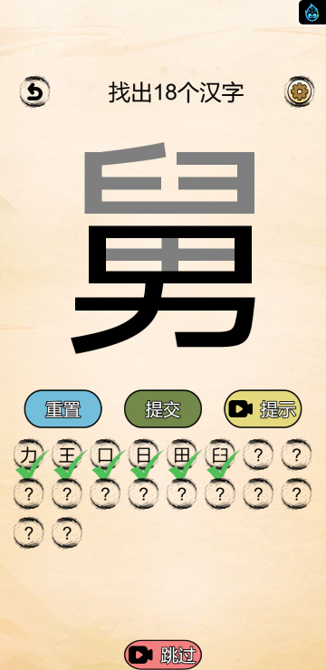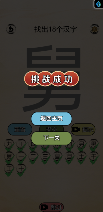 这是一款休闲文字类小游戏,游戏中包含多种模式:成语混搭(拼图猜成语)、拆文解字(根据给出的字找到所有里面包含的文字)、文字找茬(找出不同的字)、笔画猜字(根据笔画顺序猜字)、添一笔成字(添加一笔成为新字)等模式,快来挑战一下吧!