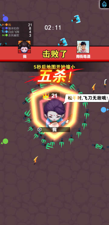 这是一款休闲益智类小游戏,游戏中你需要不断拾取刀剑来壮大自己的实力,还要注意躲避实力比自己强大的敌人,如果遇到比自己弱的敌人也一定不要放过,努力活到最后取得第一,游戏中还可以通过金币和钻石来解锁不同的角色和皮肤,快来挑战吧!