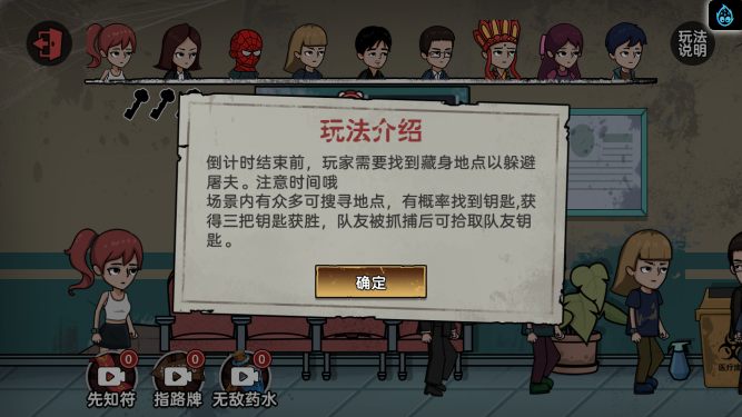 这是一款益智类小游戏,游戏分为不同的游戏模式,不同场景对应的角色也有所不同,游戏的目标只有一个那就是努力活到最后,可以使用道具来获取信息和BUFF,还可以通过金币来购买自己喜欢的角色地图道具等,快来试试吧!