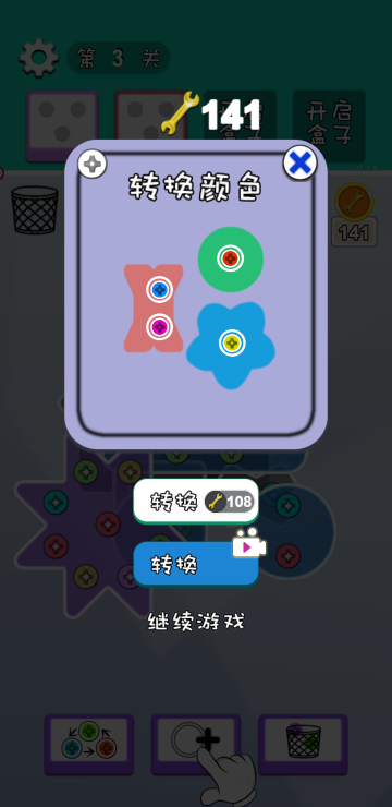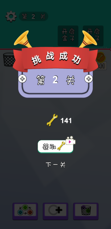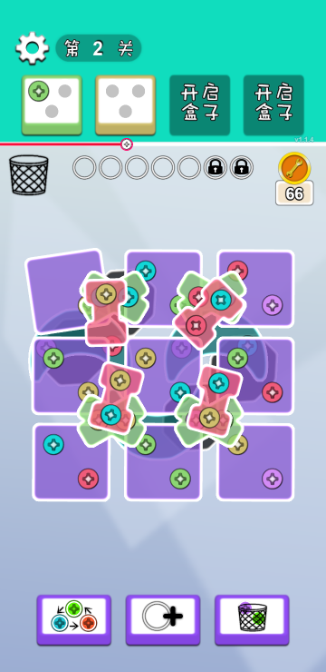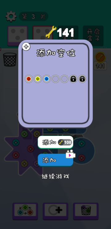 通过拆除不同颜色的钉子来解锁木板,当所有木板全部滑落即为游戏胜利,当备用螺丝孔全部装满则游戏失败,如果备用孔不够一定要记得多多利用道具哦。