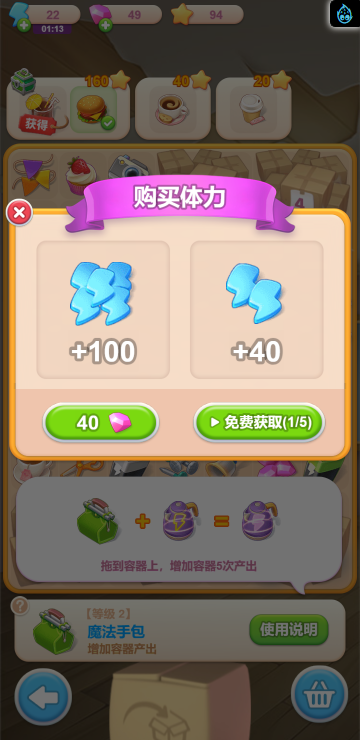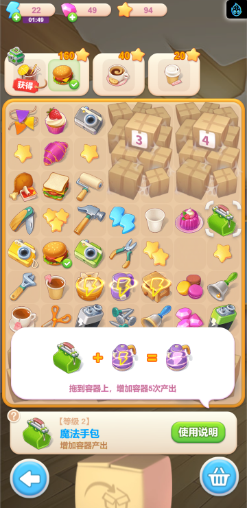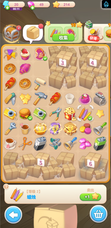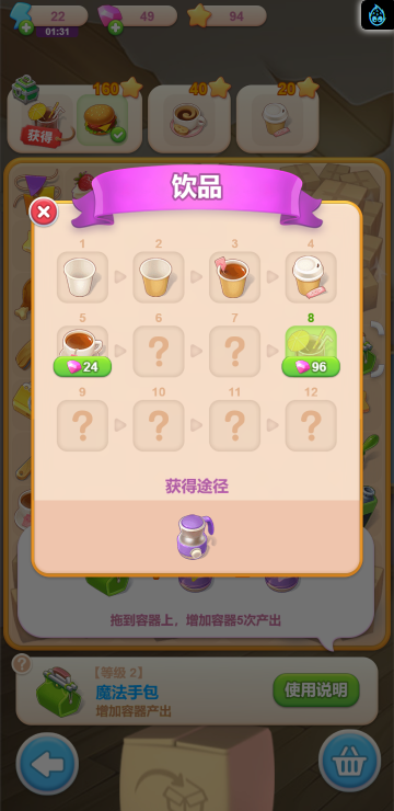 这是一款合成消除游戏,你需要根据顾客的不同需求,为他们合成对应的物品,有些物品是需要解锁才能得到的。
