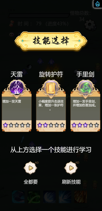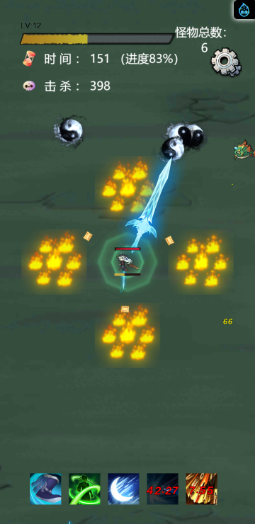 这是一款闯关割草类游戏,不断会有大批量怪物向你发起攻击,你需要选择合适的属性加成并提升战斗力来消灭他们。