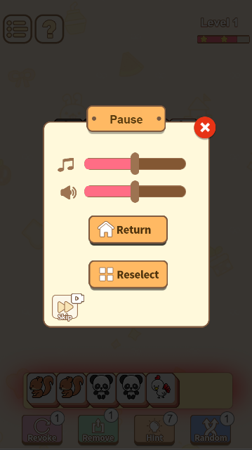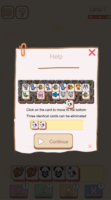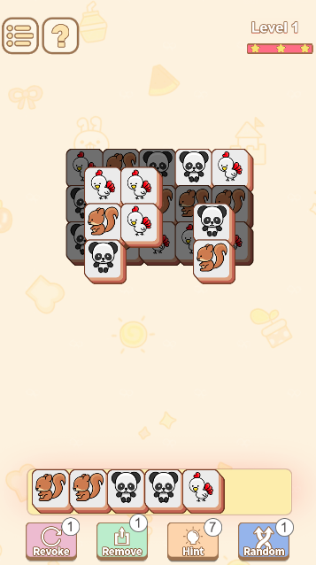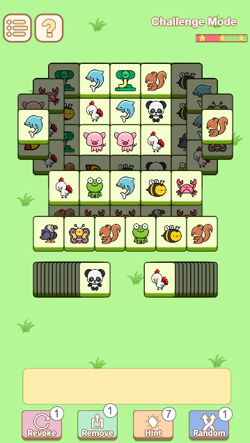 三种一样的动物同在状态栏即可消除,当状态栏满且没有可以消除的情况即为失败,游戏分为闯关模式和挑战模式,合理使用道具游戏更加愉快。