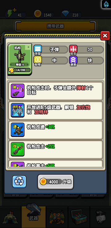 这是一款合成塔防游戏,通过不断升级武器装备,才能在后续的闯关塔防战斗中更容易取得最终的胜利。