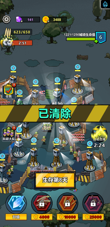 这是一款合成塔防游戏,通过不断合成防御塔提升等级和战斗力,以便抵御每一波的僵尸进攻。