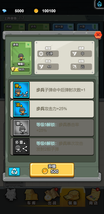 这是一款合成闯关类游戏,你需要不断合成升级武器,以便在闯关中能够更加轻松的消灭敌人。