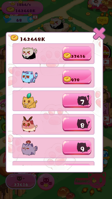 低级猫咪可以合成高级猫咪,不同猫咪在跑道运行获取的金币不一样,等级越高收益越高,金币可以用来从商城购买猫咪,共有30只猫咪可以养成哦,一只比一只漂亮。