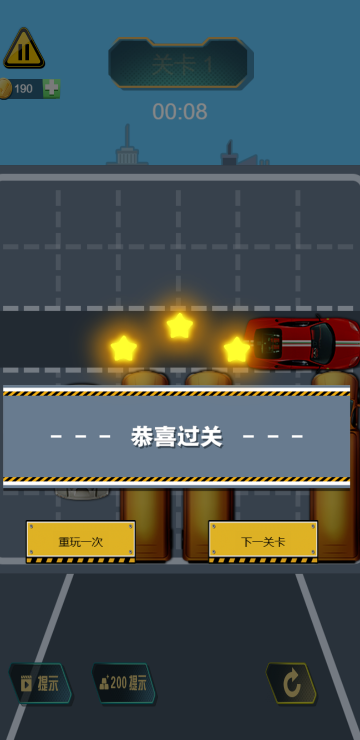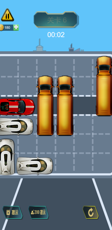 此游戏为休闲类游戏,游戏内摆满车辆,胜利目标是让红色车辆沿着道路到达终点即为胜利,需要开动大脑来思考,怎么可以移动其他车辆来空出道路。共有四种难度,每种难度各有100关。