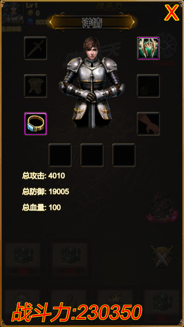 这是一个挂机游戏,游戏内角色可以用装备来提升战力,战力越高打怪越轻松,通过抽奖可以概率获得高等级装备,副本也会掉落各种道具,用来升级翅膀技能的属性和品质,另外商店也可以买到你想要的物品。