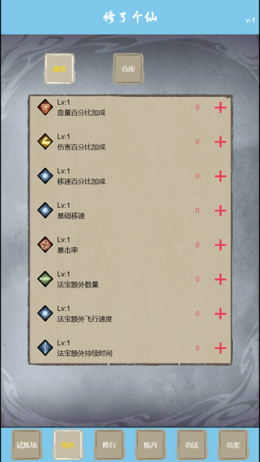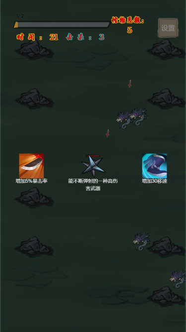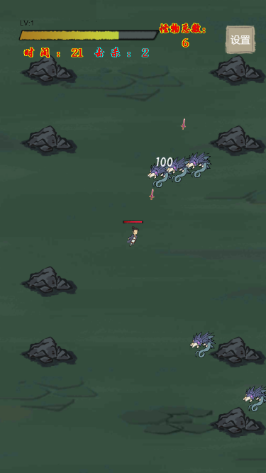一个战斗类的割草游戏,每关有一定数量的怪兽,你需要把他们击杀完成通关,过程中会随机出现各种道具,合理使用道具更容易通过,并且可以通过提升属性和炼丹来提升自己的实力,越往后的关卡难度越高,实力越高更容易通关。