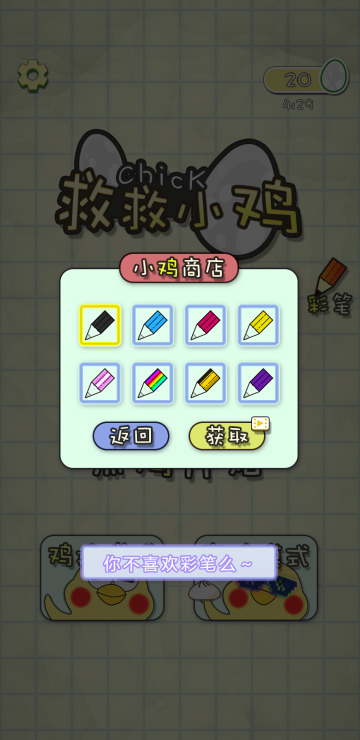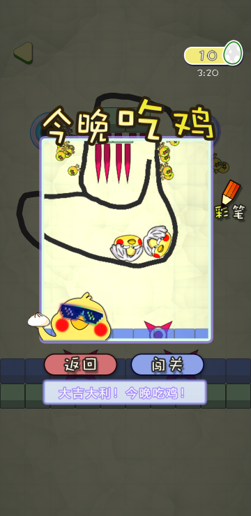 此游戏为休闲益智类小游戏,玩起来很有意思,游戏中你需要通过画线来确保小鸡的安全,并且只能画一笔,结束后机关就会生效,倒计时截止如果小鸡安全则胜利。还有建造模式,自己可以根据给出的道具来建造自己想要的关卡难度来挑战。