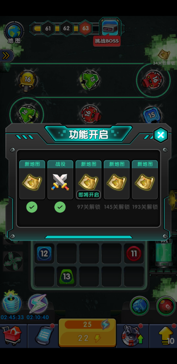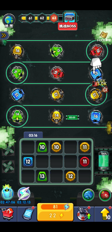 此游戏为休闲战斗类游戏,游戏中会不断有怪兽从固定位置涌出,你需要通过合成升级炮台来消灭他们,炮台等级越高威力越大,每一关都会有BOSS出现,难度随关卡递增。合理使用技能能让游戏更加轻松,比如自动合成、能量翻倍、攻速翻倍等,700多关等你来挑战!