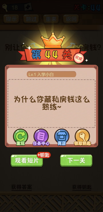 此游戏为休闲益智游戏,这是一个很烧脑的游戏,玩起来很有意思,你会发现很多题有很深的套路,虽然可能以前被套路过可还是跑不出那个框架,开动你的大脑努力发现问题才能更好的解决问题。